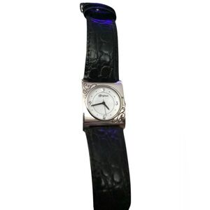 Brighton Traverse Silverplate Watch Black Leather Band 6" -7.5" Running 1331