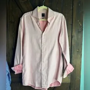 MENS. Hugo Boss Slim Fit Tailored Shirt - Light Pink Checkered Pattern EUC