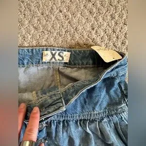 Size XS flowy denim maxi skirt. Does run a little large for an XS. Beautiful skirt !