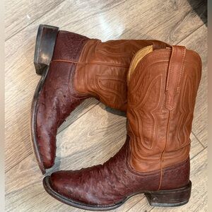 Tecovas THE EMMITT OSTRICH Roper Square toe cowboy boot Sz 9.5 D