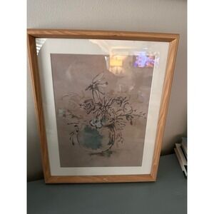Beautiful floral picture in natural wood frame. Measurements in picture
