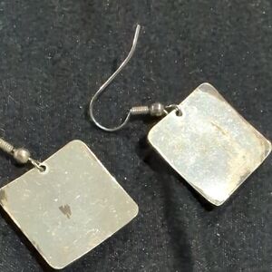 These elegant square earrings feature a striking silver and black design, perfect for adding a touch of sophistication to any outfit.