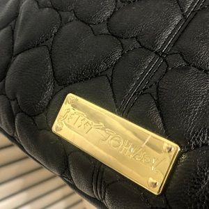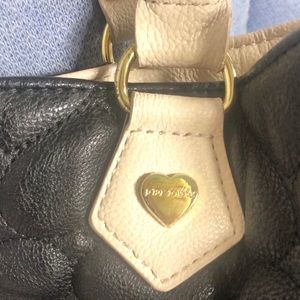 Betsy Johnson Oversized Roomy Quilted Heart Handbag Purse Crossbody Black Cream