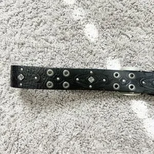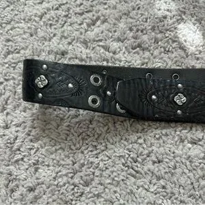 Genuine Leather Embellished Tooled Silver Buckle Floral Embossed Belt Sz L/XL