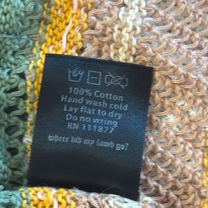 Please note that the inner size tag list a stitch on the left side so the back inner tag fold down slightly but it doesn’t affect the way the sweater looks on and wold be simply to add a stitch to it. They are two other stitches that attach it to the sweater so the tag is fully attached minus one side.