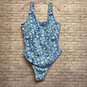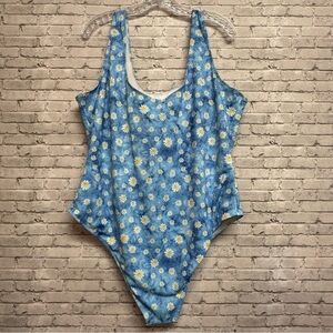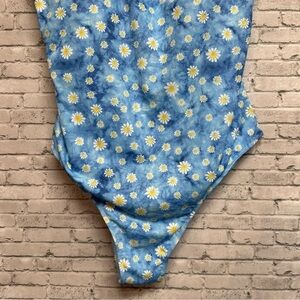 Women's Size 4XL Blue Floral Tie Dye One Piece Swimsuit. Great pre-owned condition. Shows no signs of wear. Please use measurements below to determine fit.
