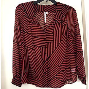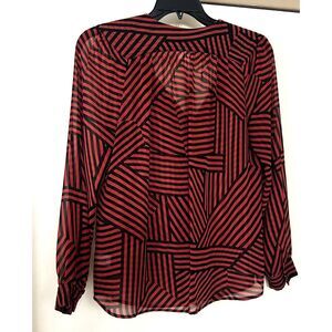 Bellatrix Sheer Button Up VNeck Blouse M Date Night Girls Night Office Geometric