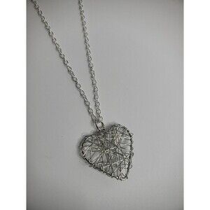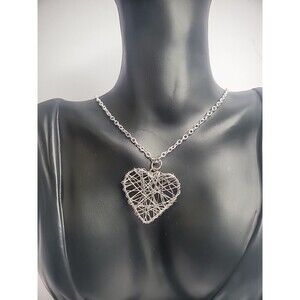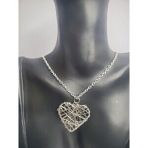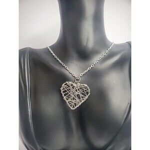 Vintage Silver Tone Chain Necklace Silver Tone Wire Wrapped Heart Pendant