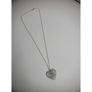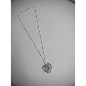 Elevate your accessory collection with this vintage chain necklace, featuring a charming silver-tone wire wrapped heart pendant. The unbranded piece exudes a timeless elegance, making it versatile for a multitude of occasions from casual outings to more formal celebrations. With a length of 21 inches, it sits gracefully at the collarbone, ensuring a comfortable fit for most. Crafted with an emphasis on beauty and love, the necklace encapsulates fashion and costume themes with a touch of sophistication. A classic lobster clasp closure provides secure fastening for everyday wear. Whether it's an anniversary, birthday, or any other special event, this necklace is a tasteful choice that will complement any outfit.