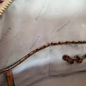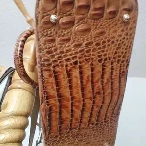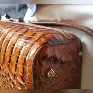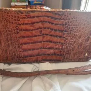 Elevate your style with this chic crocodile embossed leather satchel. The rich toasted almond color adds a touch of sophistication to any outfit. Perfect for any occasion. Long strap, Brahmin cover bag and purchase tag included. Very gently used.