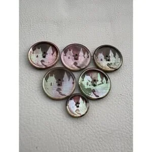 Antique Mother Of Pearl Abalone Etched Buttons Set of 6 Village Scene