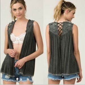 Pol Mineral Washed Charcoal Color Top Vest Brand New Size Large