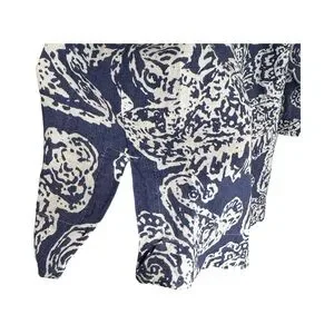 JM Collection 3/4 Sleeve Linen Button Up Tunic Blue & White Paisley SZ 14