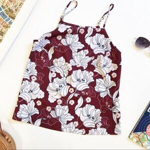 Kensie Floral Tank XS Burgundy White Summer
