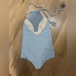 the Teahupo’o Full Piece in Sky, features a high neck crochet panel detail, and is made of buttery soft fabric that is 80% nylon 20% spandex. This isn’t your average one piece and is sure to be the envy of all your friends!