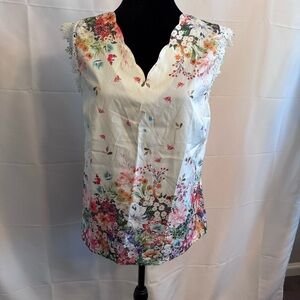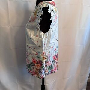 SHEIN White and Pink Sleeveless Blouse with V-Neck and lace Trim NWOT