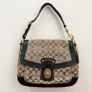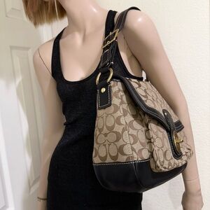 Vintage Y2K COACH F12857 Legacy Brown Signature Turnlock Large Hobo Shoulder Bag