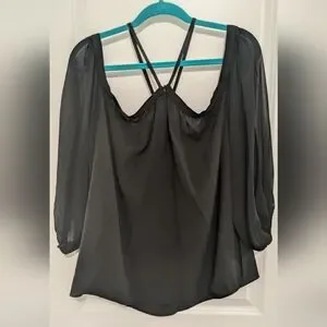 This elegant black top features a stylish design perfect for night out with the girls or a date night. Its unique style makes it a must-have in your wardrobe. Brand new with tags.