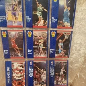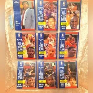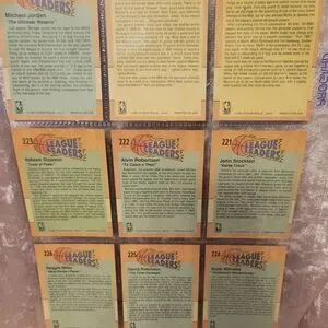 Fleer Basketball Collection, from 1991. Slam Dunk collection, Allstate team, and league leaders. The 1st sleeve alone with Michael Jordan values at 1,900.00 on Ebay. 2nd sleeve has Shawn Kemp, Kenny Smith. And 3rd sleeve has the one and only David Robinson.