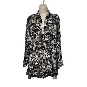 Black and White Floral Blouse