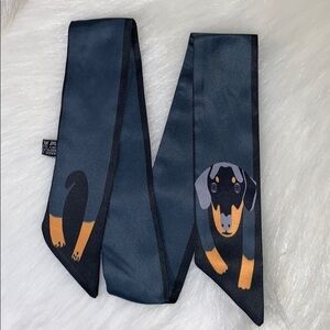 Brand New! Doxi Dachshund Doberman Scarf Twilly Bandeau or Hair Neck Bag Tie. 33”x2”. Cute cute cute! Handbags not included.