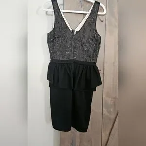 BEBE 90s Beaded top peplum mini dress. Size small
