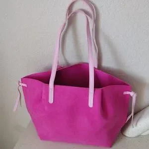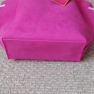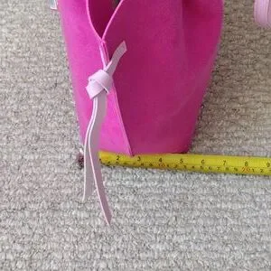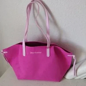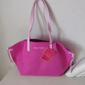 New, never used. Really pretty Juicy Couture pink tote bag. Open closure No inside pockets. Outside material is suede/pvc. Appropriately 16.5x10. From the Juicy Couture fragrance collection.