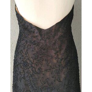 Carmen Marc Valvo Signature Halter Lace Beaded Silk Black Evening Dress Size 12
