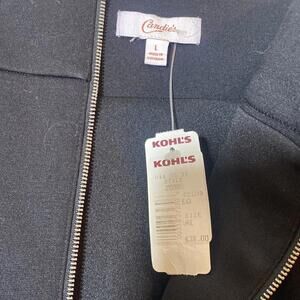 Black skirt by Candie’s that is brand new with tag attached! It’s a size L and the Body is 75% Polyester, 20% Rayon, 5% Spandex with the Lining being 100% Polyester.