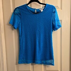 Christopher and Banks Blue Lace Short Sleeve Top, size PS