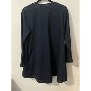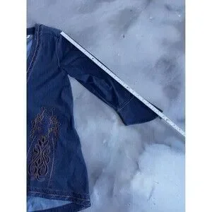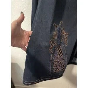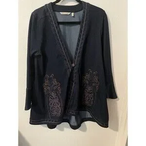 Soft Surroundings Stretch Denim Embroidery Tunic Jacket Sz PM Boho Button Front