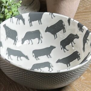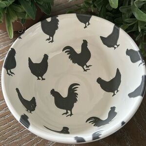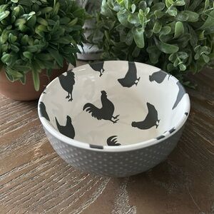 OH SO CUTE! Fabulous & Function Cottage Farmhouse Ceramic Gray & Creamy White Serving Bowl with Farm Rooster Pattern! This charming bowl features a delightful Gray Rooster pattern on a creamy white background. The exterior has a lovely dotted texture! Perfect for adding a touch of whimsy to your home decor. Add a charming farmhouse touch to your kitchen table top! When not in use display on your buffet server, hutch cabinet, Bakers rack, or shelf! Perfect for serving dips or sauces! Use as a candy dish in your living family room or entryway foyer! Pairs well with Farmhouse, Cottage, French Country, Bohemian , Shabby Chic & Neutral decor styles! Find coordinating Sheep & Cow bowls as seen in the last two pictures listed separately in my closet.