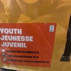 Youth costume featuring the Fortnite 8-Ball character. Includes jumpsuit, belt, pouch, foam dagger, knee pad, and mask. Perfect for fans of the game.
