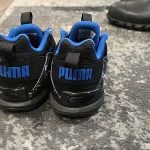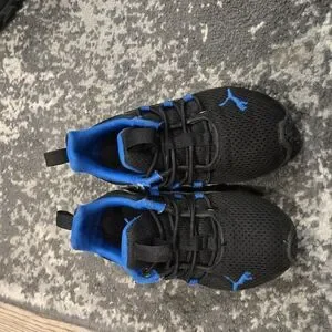 Stylish and comfortable, these Puma kids sneakers feature a sleek black design with vibrant blue accents. Perfect for active play and everyday wear.