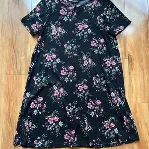 Floral Black T-Shirt Dress