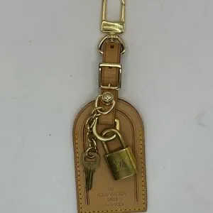 Louis Vuitton Tan Leather Luggage Tag with Lock and Key