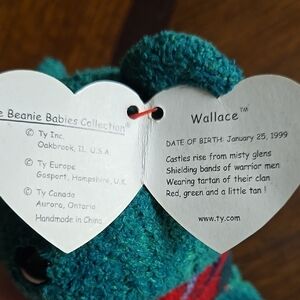 Rare 1999 beanie baby, Wallace. Errors on tag with extra space after tan ! good condition with tags attached.