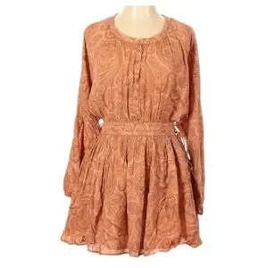 This vibrant orange mini sundress from Amuse Society features a crew neck and elegant bishop sleeves, perfect for a casual day or a night out. Its lightweight fabric and gathered waistline offer a flattering and comfortable fit. The dress's warm hue and flowing design exude a chic and effortless style.
