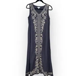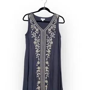 PureJill Linen Embroidered Maxi Dress, Like New Condition, Size S