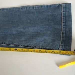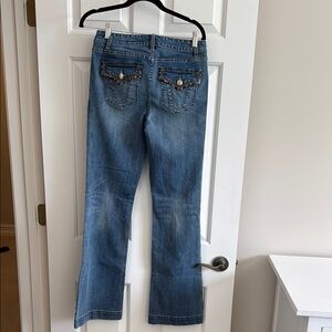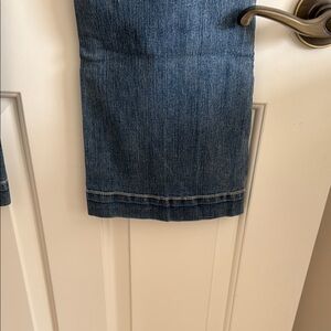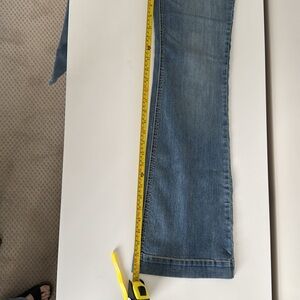 Experience the perfect blend of style and comfort with these Cache blue flare wide leg jeans. Crafted from high-quality denim, they feature a flattering wide leg silhouette that adds a touch of elegance to any outfit. The classic blue color and subtle fading make them a versatile addition to your wardrobe.