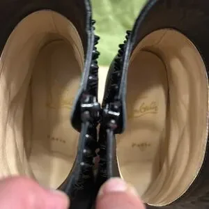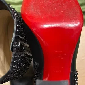 Step out in style with these stunning Christian Louboutin black studded boots. Perfect for adding an edgy touch to any outfit, these boots are a must-have for fashion-forward individuals. No box, dust bags only. Missing one tiny stud on the left boot by the zipper, see pics…