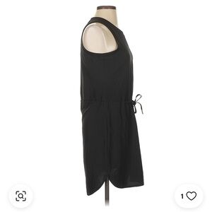 Chic black sleeveless dress by Kyodan. Perfect for any occasion. Ties at the waist