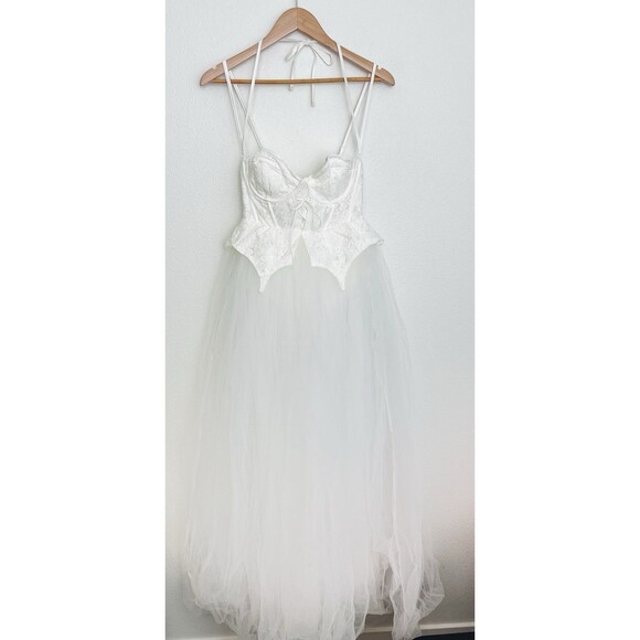 For Love & Lemons Lily Bridal Dress S White Corset Tulle Maxi Ethereal Fairy