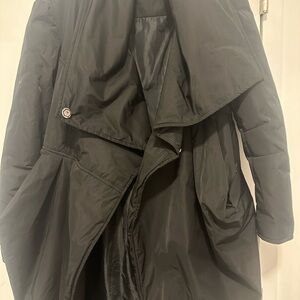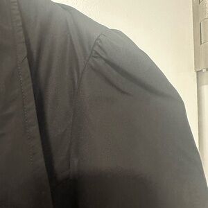 Ravel jacket - 3/4 length - size XL with waist tie. Very cool silhouette - has wide / puffy pockets - neck can be buttoned up as a funnel or lay open - magnetic buttons