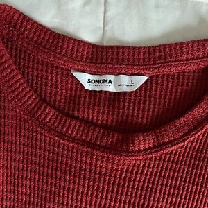 Cozy red waffle knit long sleeve top. Perfect for casual wear.