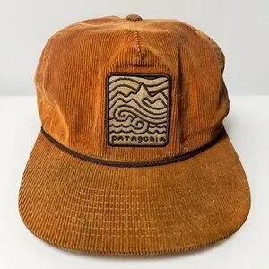 The product is a rare Patagonia "Seazy Breezy" corduroy hat in saddle rust brown, designed for men in a casual, outdoor style. The solid brown color and baseball cap design make it a versatile accessory for the fall season. This one-size hat is perfect for those looking to add a touch of outdoor flair to their casual wardrobe.