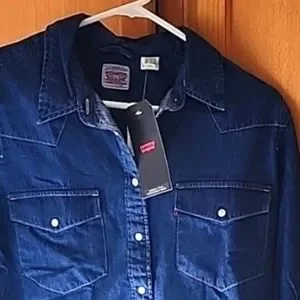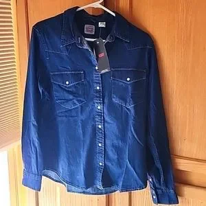Levi Strauss Jean Shirt Long Sleeve Pearl snaps Front Pockets, Size XL