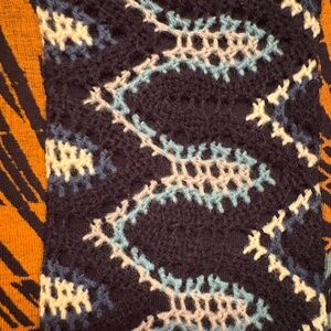 Custo Barcelona Vibrant long sleeve dress with a unique multicolor and crocheted pattern. Features shades of orange, green, and black. Worn once. Excellent condition. Size 2, S/M
