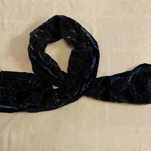 Scarf Velvet Devore Ornate Blue and Black Scarf Fine Silk Viscose Burnt Out NWOT