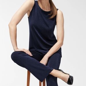 Elegant navy sleeveless set perfect for any occasion. Comfortable stretchy and stylish design from chico's. tank top is size 0, armpit to armpit is 16 1/2", shoulder to hem is 22"
